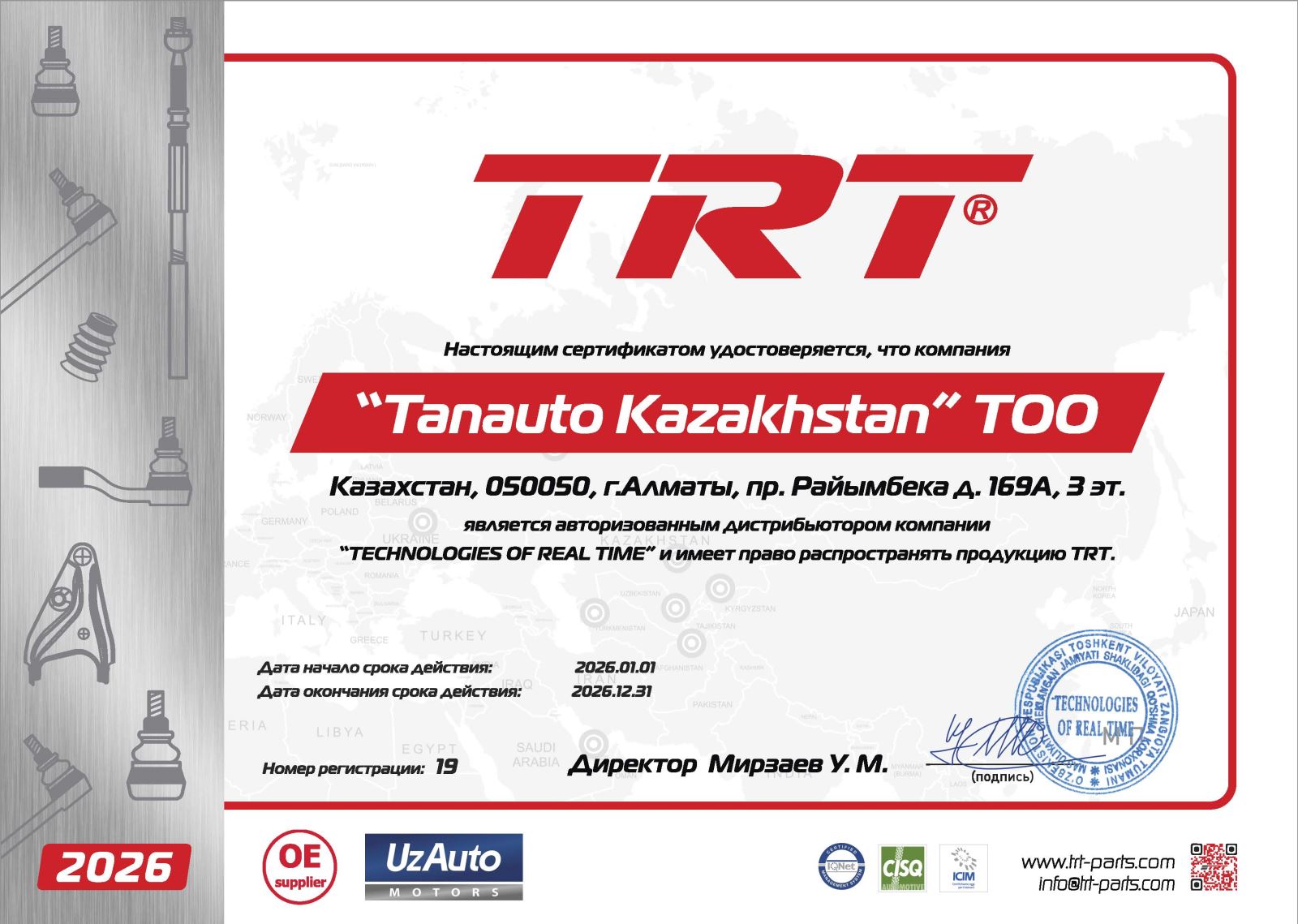 Главное направление компании TRT – полный цикл производства современных высококачественных автозапчастей для легковых и грузовых автомобилей. В компании TRT работают высококлассные специалисты, знающие все о продукции и процессе производства. Сотрудники компании регулярно проходят тренинги по внедрению стандартов качества и контроля GENERAL MOTORS в производственном процессе.
