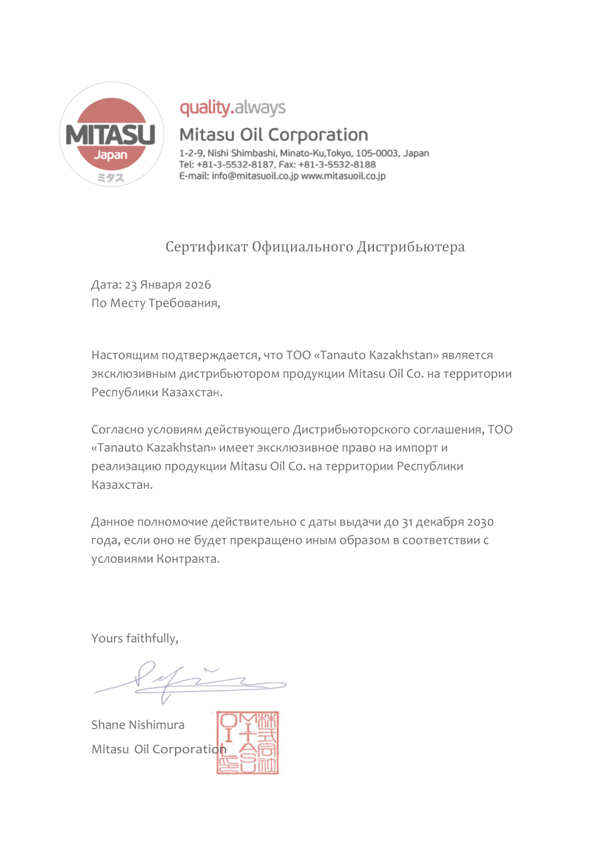 MITASU OIL CORPORATION – лидирующий разработчик и производитель высококачественных жидкостей и моторных масел для японских автомобилей. Ключевым компонентом наших долгосрочных успехов и одним из главных элементов философии нашей компании всегда было и остается понимание нужд наших клиентов. В результате наша продукция соответствует, а в большинстве случаев превосходит самые высокие международные стандарты качества*.* Продукция MITASU OIL успешно заменяет оригинальные японские масла для японских автомобилей, эксплуатируемых вне Японии. Японские моторные масла и специальные жидкости компании MITASU OIL выполняют и даже превосходят самые жесткие требования ведущих мировых автопроизводителей, таких как TOYOTA, NISSAN, MAZDA, HONDA, MERСEDES-BENZ, VW, VOLVO, PORSCHE и других.